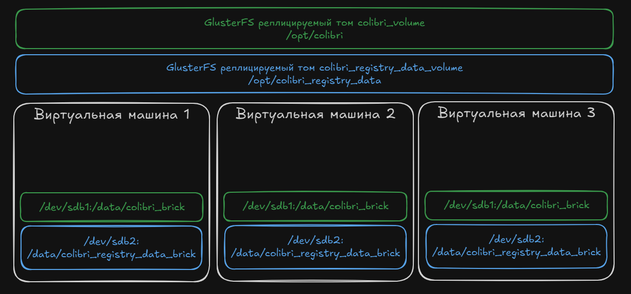Стоит отметить, что для крупных и серьезных внедрений мы рекомендуем не использовать GlusterFS, и вместо этого отдавать предпочтение зрелым аппаратным решениям хранения данных. Это связано с тем, что GlusterFS является менее стабильной реализацией, которая может не соответствовать высоким требованиям к надежности и производительности в больших кластерах. Поэтому материал больше ориентирован на небольшие кластеры с умеренными требованиями, где простота установки и поддержки важнее максимально высокой отказоустойчивости.