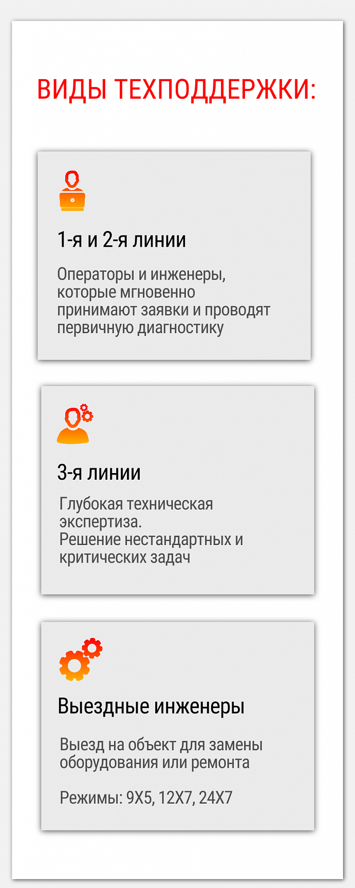 режим работы 1-й, 2-й линий поддержки и полевых инженеров